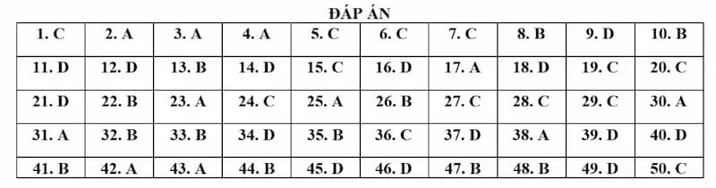 | 31. B | 32. C | 33. C | 34. D | 35. A | 36. C | 37. D | 38. D | 39. B | 40. C |