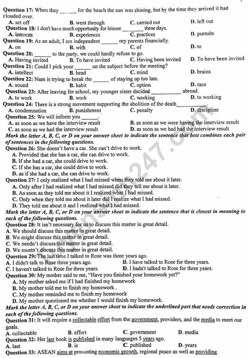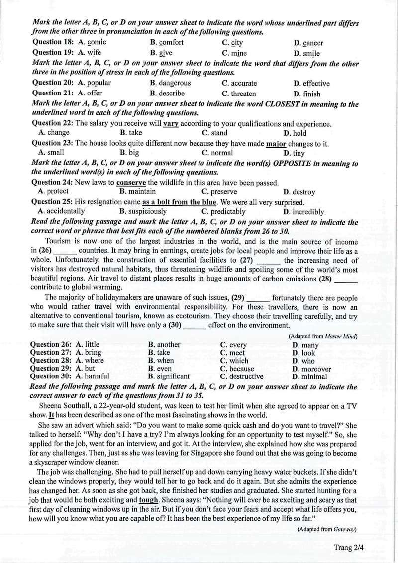 Tổng hợp đề thi Môn tiếng Anh kì thi THPTQG năm 2024