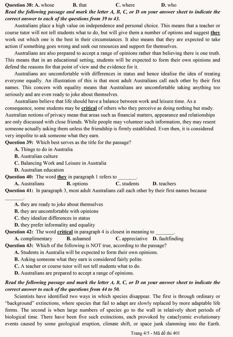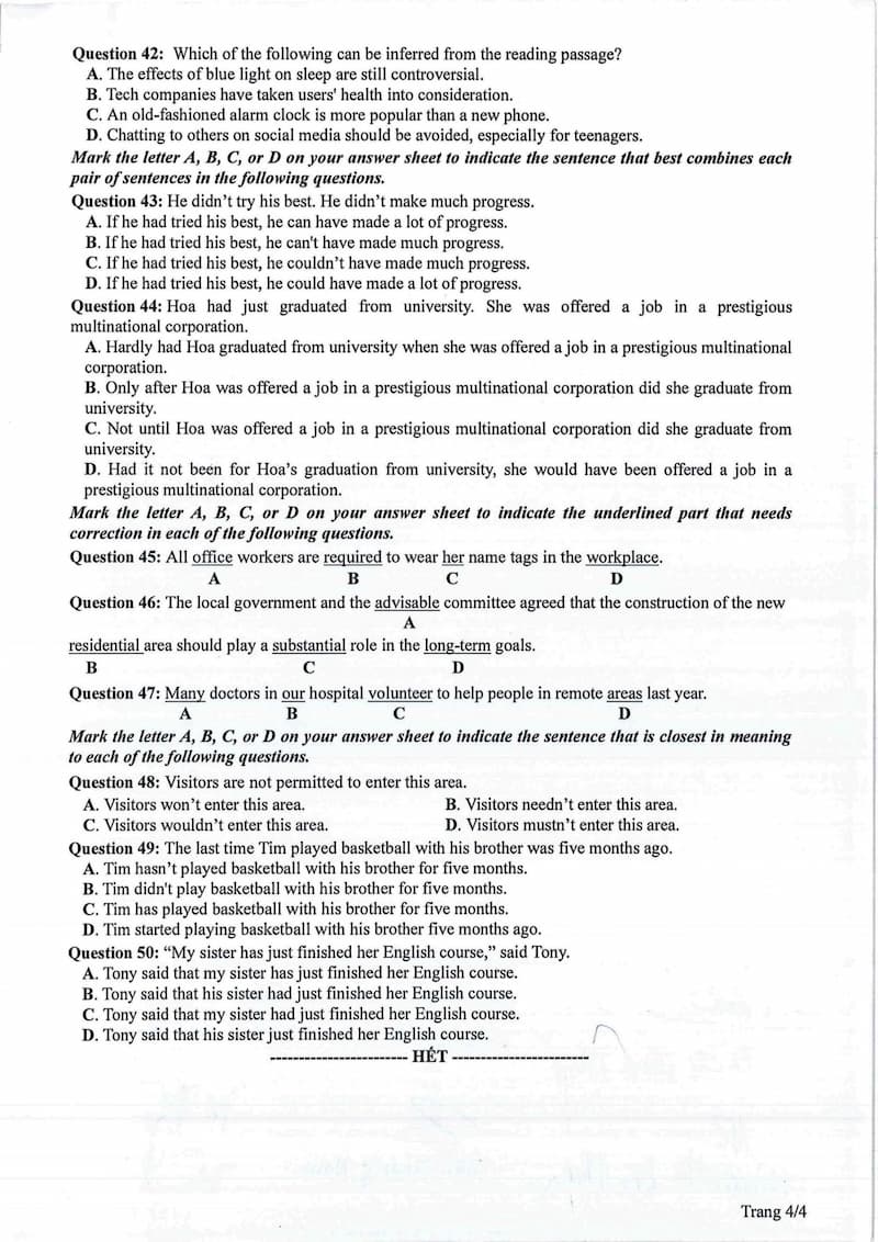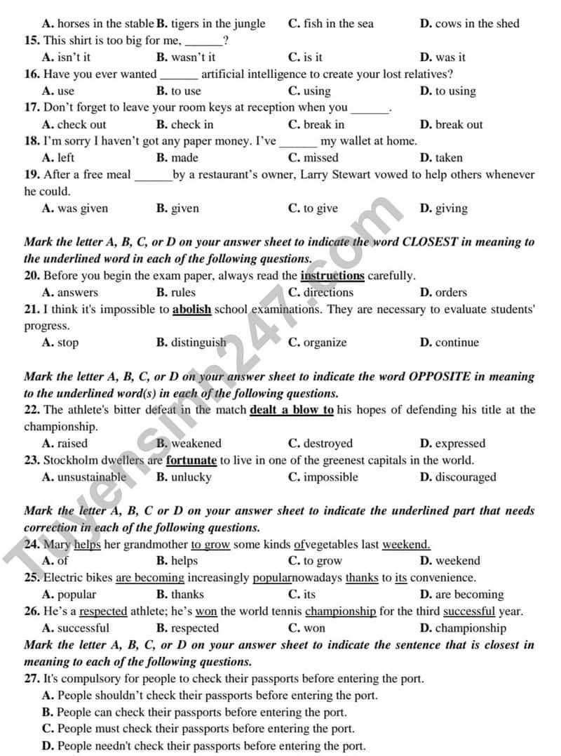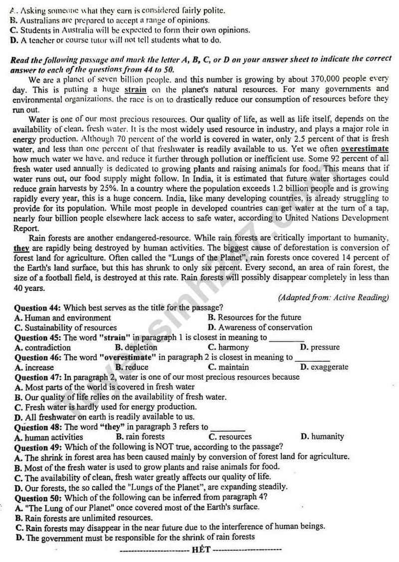 - Đọc Kỹ Đề Bài: Đảm bảo hiểu rõ yêu cầu của từng câu hỏi trước khi trả lời. Đọc kỹ đoạn văn trong phần Reading Comprehension để nắm bắt thông tin chính xác.