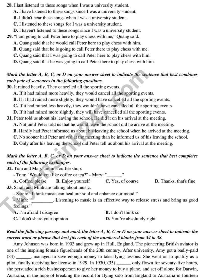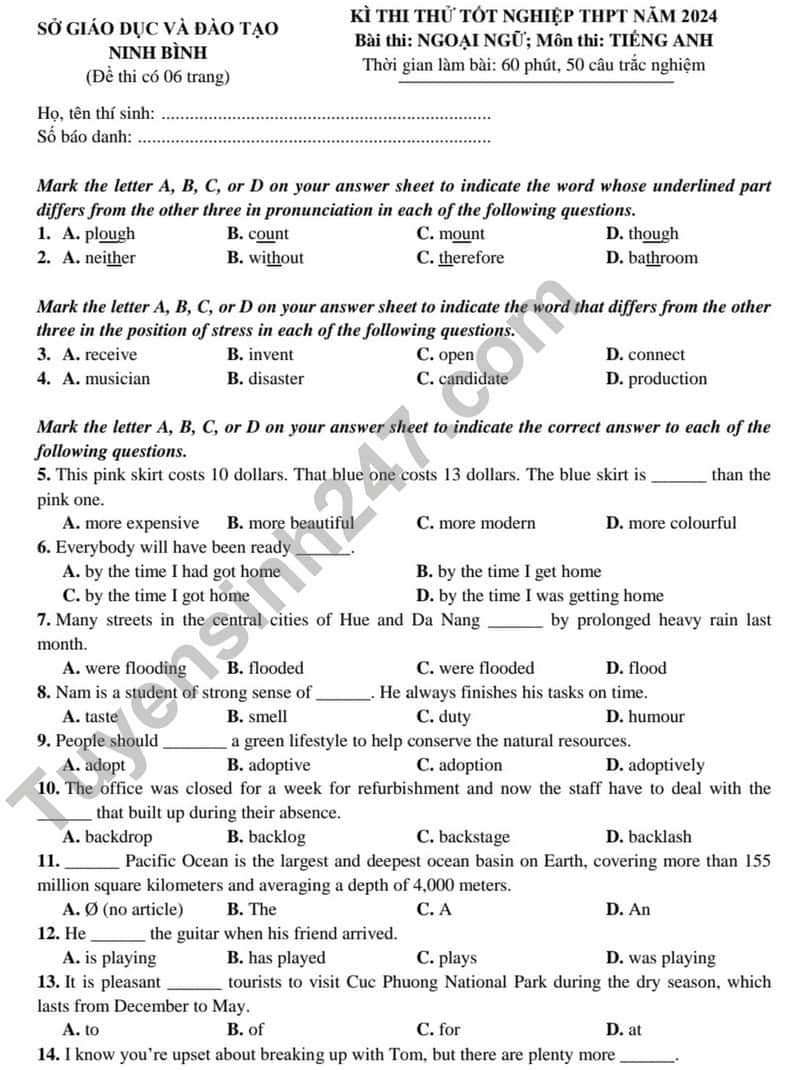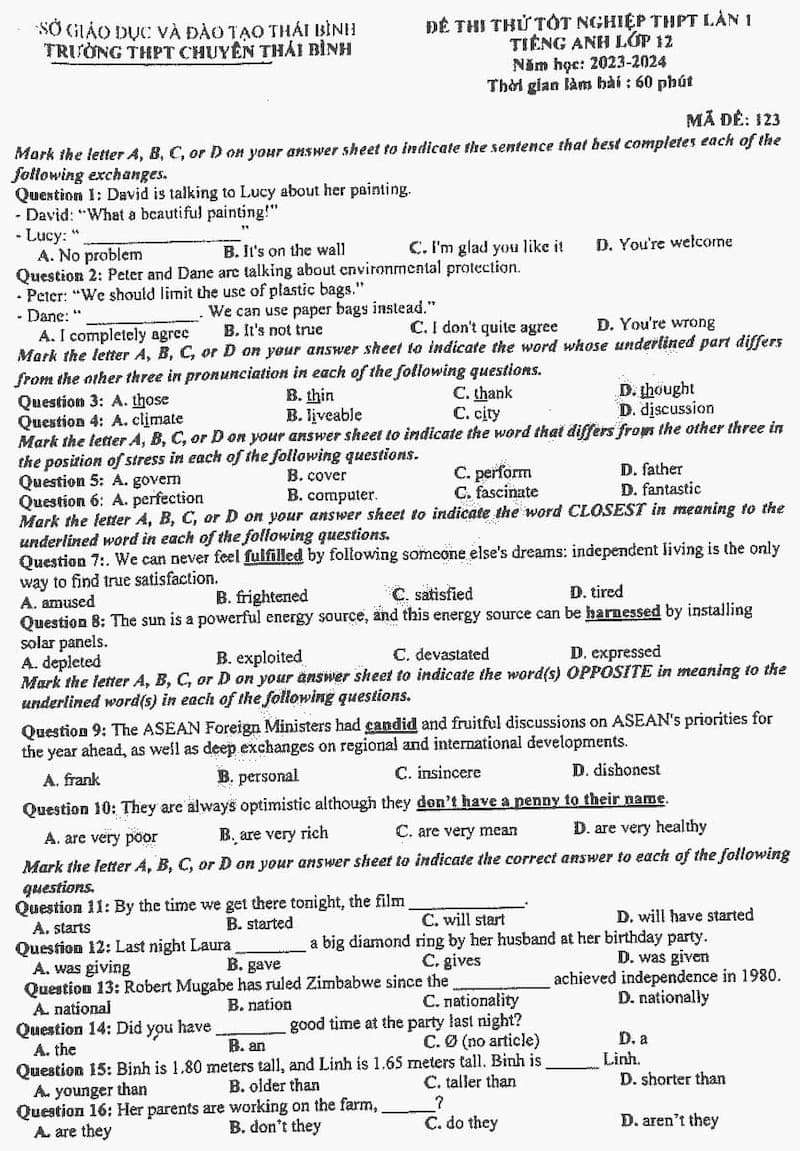 b. Đề thi thử tốt nghiệp THPT 2024 môn Tiếng Anh – Trường THPT Chuyên Thái Bình (có đáp án)