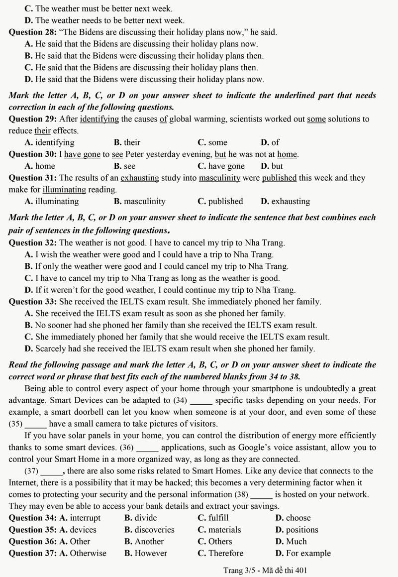 3.1 Đề thi thử môn tiếng Anh của Bộ Giáo Dục & Đào Tạo