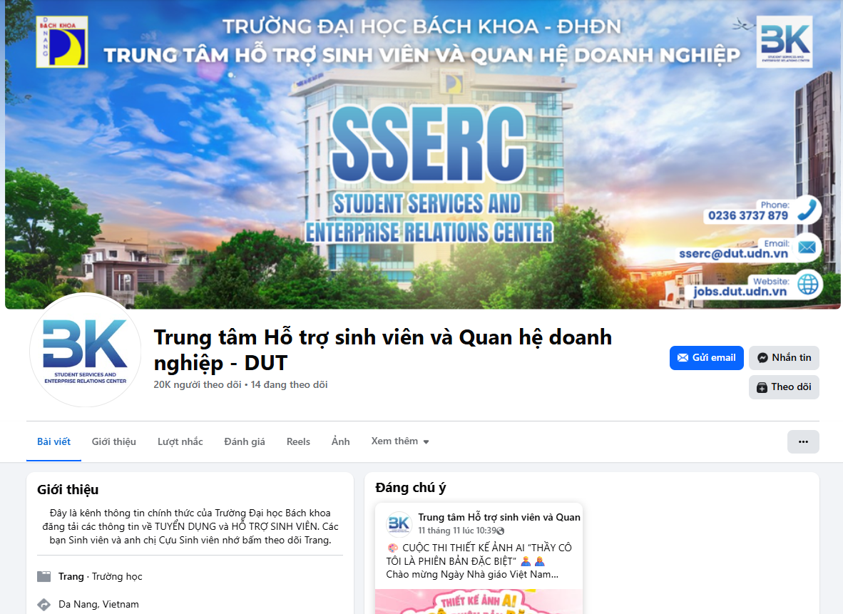 - Các bạn theo dõi thông tin ở trang sau: https://www.facebook.com/SSERC.DUT/posts/pfbid02DayLy8paXJMH33yiNWyBdu9CjPUSERVcqD9TPC6PvyBQAB45KpU7Ai9CnfDdarCTl?rdid=WQUQ1M6yH5xX1Nio#