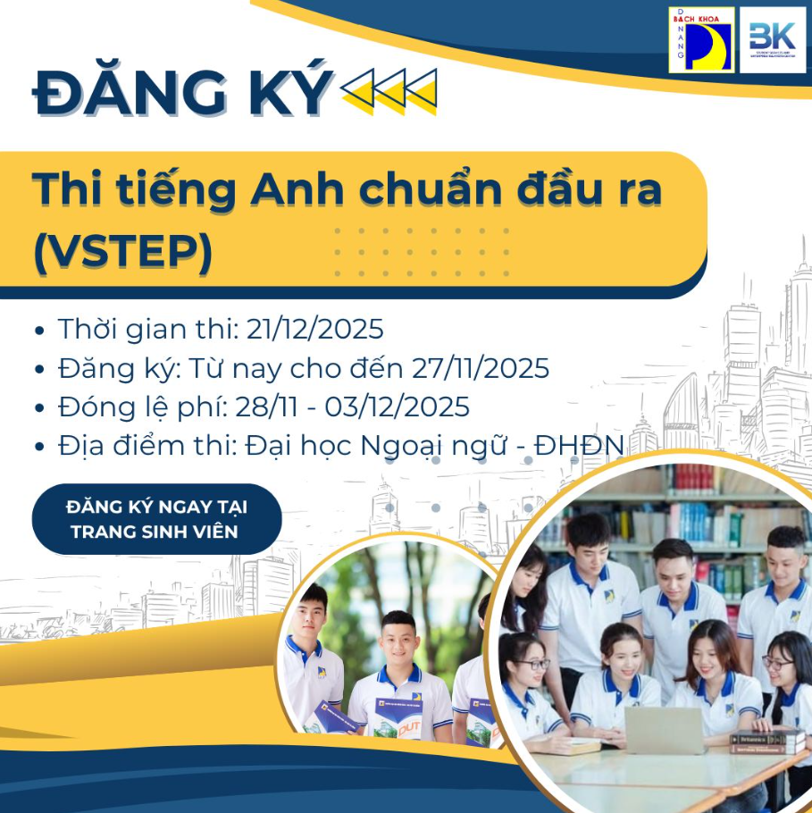 Dưới đây là hướng dẫn đăng kí thi đánh giá năng lực tiếng Anh theo khung ngoại ngữ 6 bậc dùng cho Việt Nam năm 2025 tại trường Đại học Bách Khoa – Đại học Đà Nẵng. Các bạn làm theo các bước dưới đây để đăng ký thi đánh giá năng lực VSTEP và pass học phần nhé!